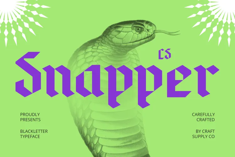 CS Snapper Blackletter Font delivers bold, dramatic letterforms with sharp contrast and a commanding presence. Its gothic influence immediately communicates intensity and mystery—perfect for album titles and bold art pieces inspired by a masquerade theme.