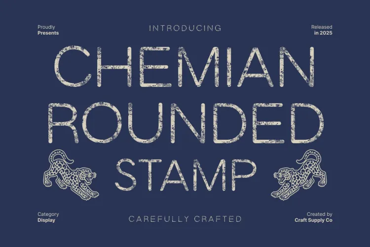 Chemian Rounded Stamp introduces a playful organic texture that offsets the seriousness of blackletter fonts. It adds tactile character and works well for secondary text, artistic accents, and layered compositions.