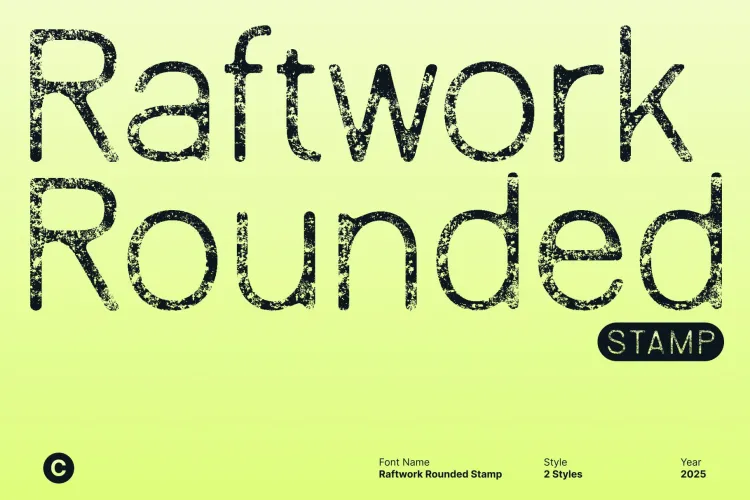 Raftwork Rounded Stamp offers a bold, textured stamp feel with rounded edges, adding visual warmth and authenticity to promotional graphics and limited-edition designs.